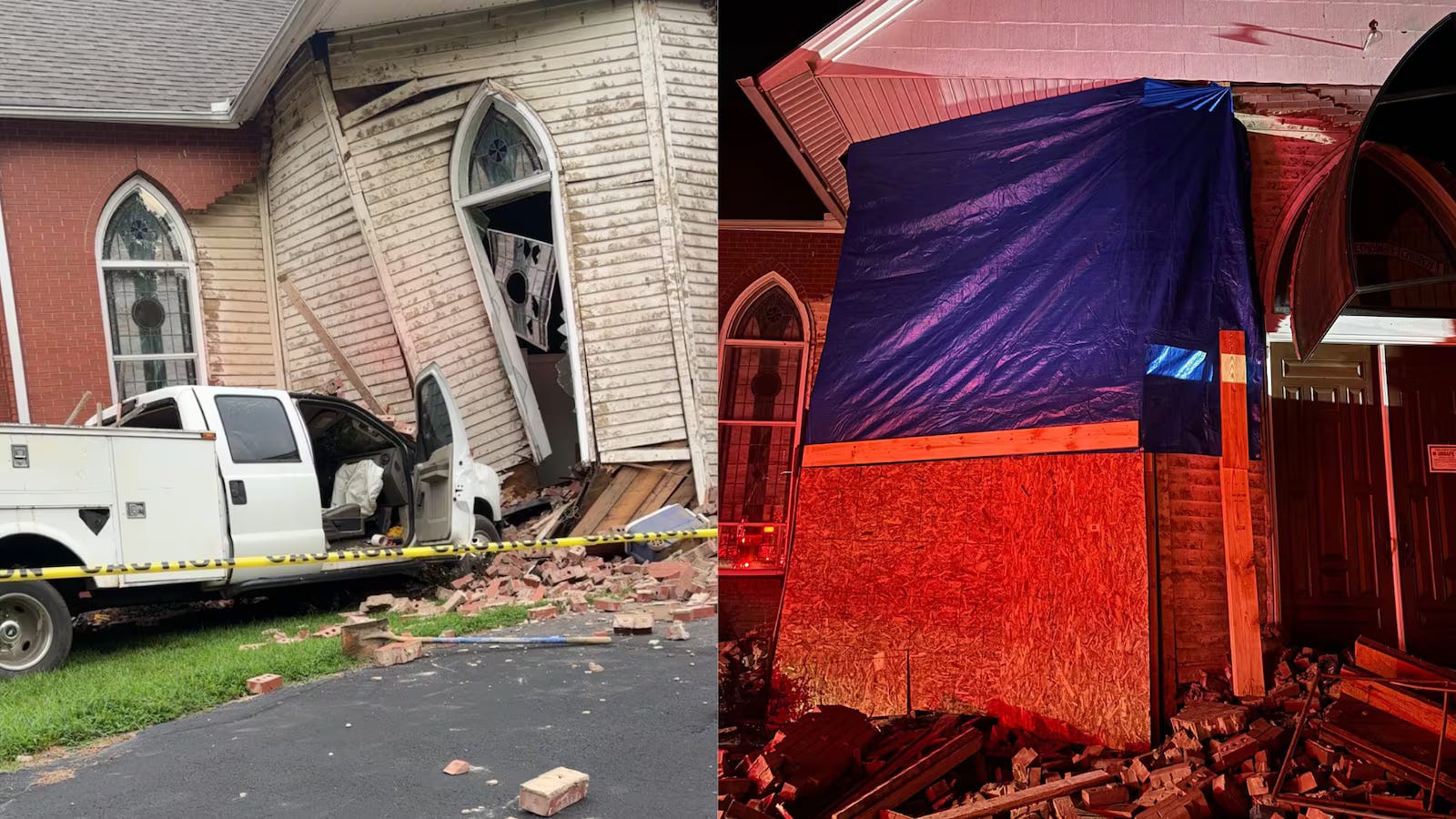 Bethel United Methodist Church in Denver, North Carolina, sustained heavy damage Friday evening when a Ford F-350 Super Duty truck veered off Campground Road and struck the building. Authorities reported the truck crossed the center line around 6:30 p.m., hit a utility pole, and then crashed into the church. The 49-year-old driver was not injured but was arrested for driving while impaired, driving with a revoked license, and reckless driving. He was booked into the Lincoln County Detention Center on a $1,000 bond. The Denver Fire Department worked through the night and cleared the scene by 1 a.m.