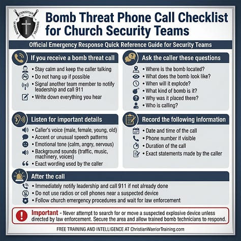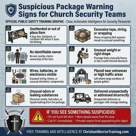 Normally, this weekly roll call briefing is an added benefit for paid subscribers. Most of this information is available across the site, I’m simply packaging it in one place to make it easy for Safety Ministry leaders to brief their teams. I will not put critical intelligence behind a paywall. We also provide free training to churches, you can access it anytime by using the Training link above.